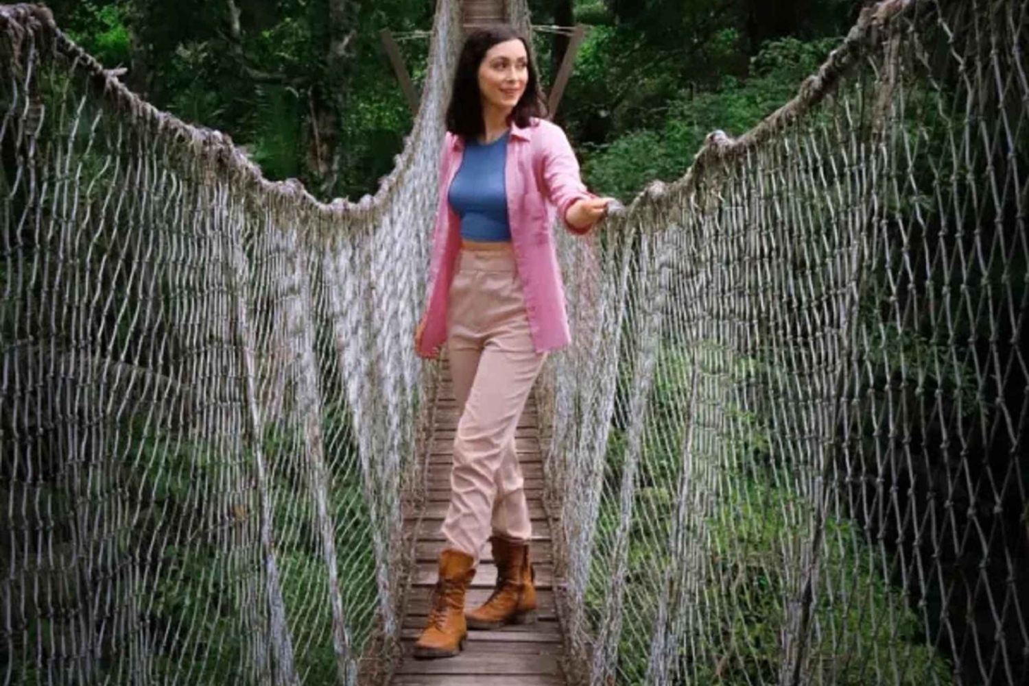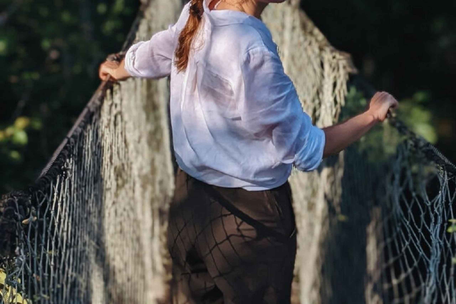 - Wandel tussen de boomtoppen op hangbruggen meer dan 30 meter boven de grond.