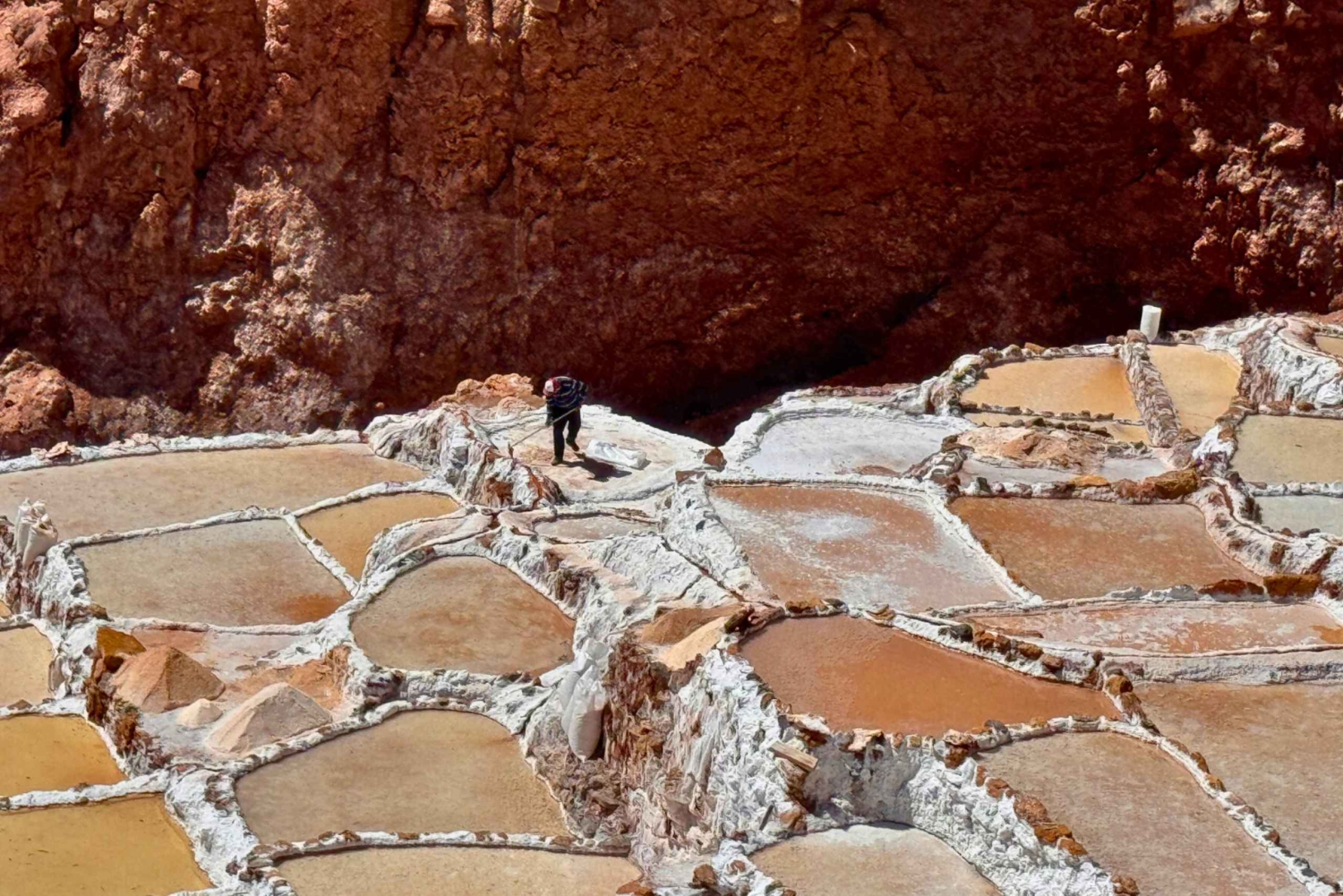 Bezoek daarna de iconische zoutmijnen van Maras, waar duizenden zoutbassins glinsteren in de zon. Ontdek de traditionele methoden voor zoutwinning, die teruggaan tot de pre-Inca-tijd, en bewonder het opvallende landschap dat deze plek zo fotogeniek maakt.