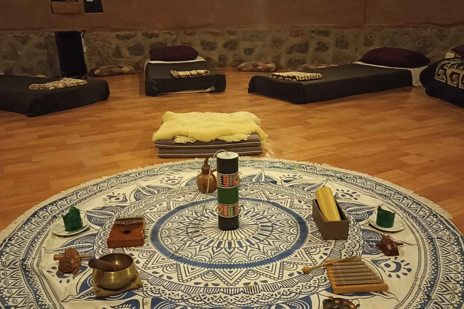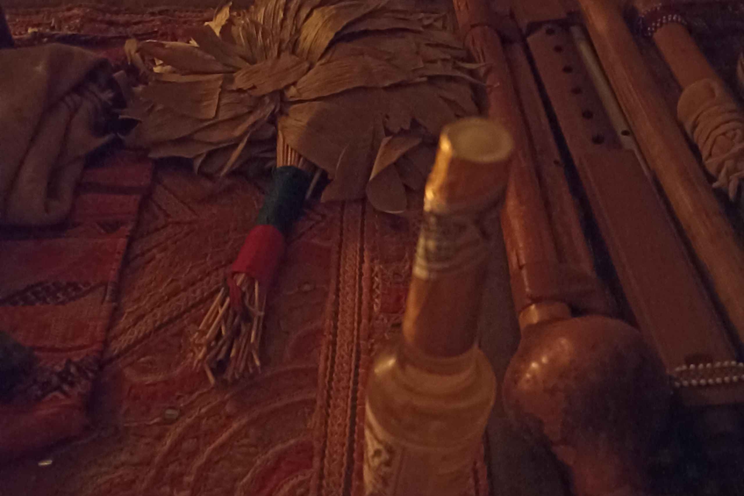 Deretter drar vi til vår maloca, som ligger i nærheten av månetempelet, hvor vi skal gjennomføre seremonien. Vi tar medisinen og akkompagnerer opplevelsen med musikk og instrumenter som hjelper oss å fokusere.