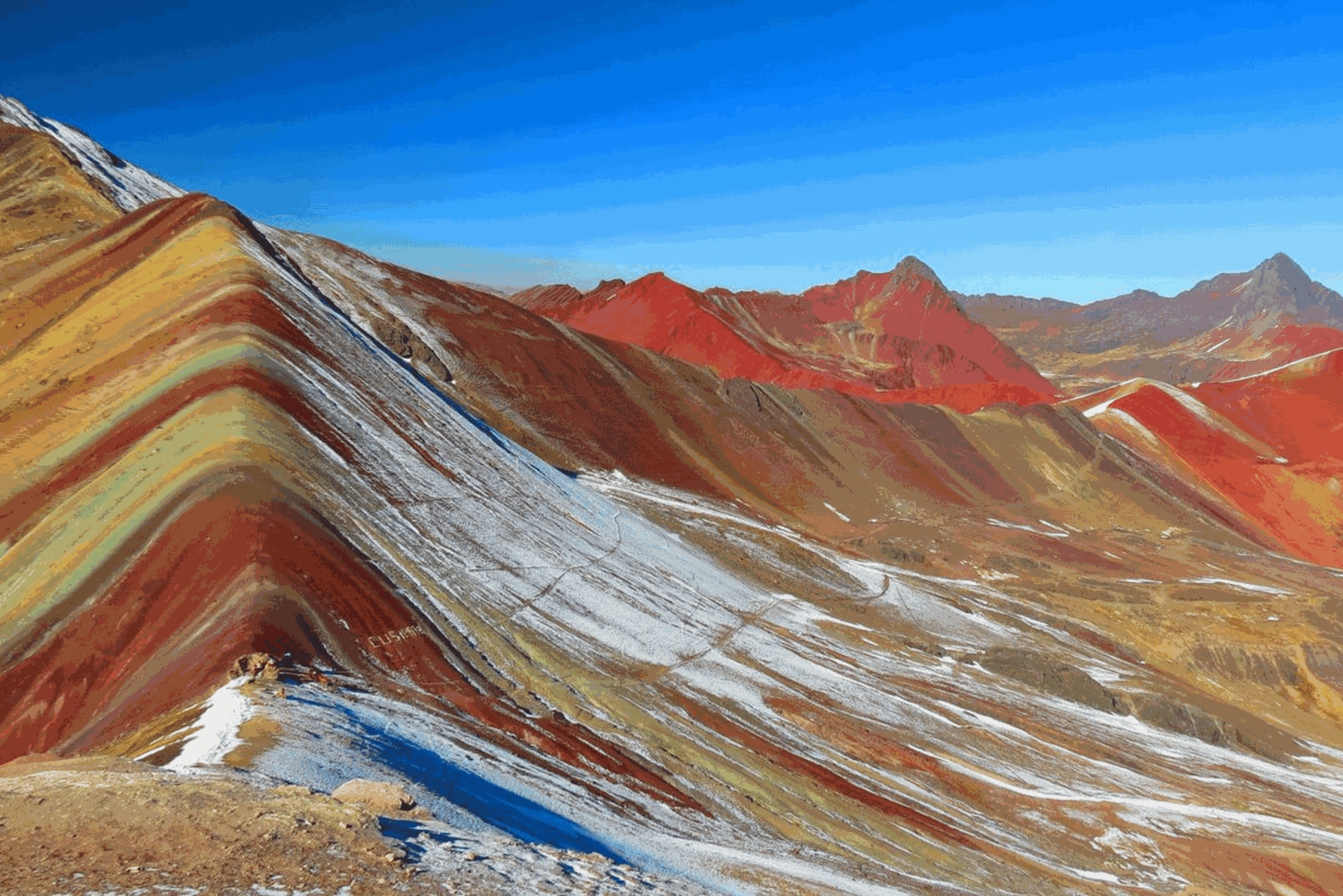 - Vandre til de livlige bakkene på Rainbow Mountain med utsikt over Ausangate.