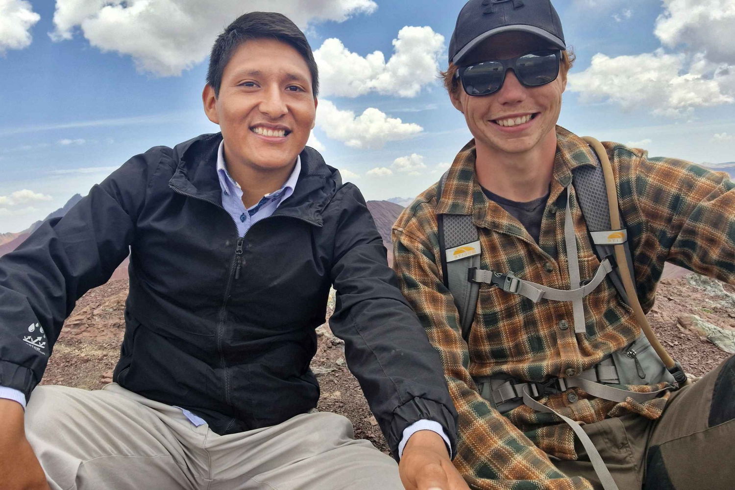 Herfra befinner vi oss i det peruanske Andeslandskapet nær Rainbow Mountain. Her venter vår lokale motorsykkelfører, som gjennom en privat spesialvei vil ta oss til toppen av fjellet på 8 minutter, slik at vi slipper den 2,3 km lange, vanskelige turstien og kommer til fjellet på en veldig enkel måte.