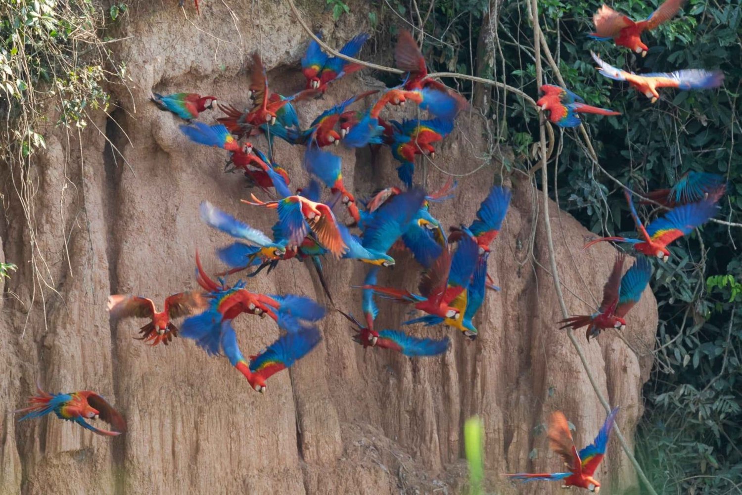 Opplev de livlige fargene til papegøyer og araer ved Tambopata-elven. Ta fantastiske bilder mens de samles for å spise salt og leire, og lær om bevaring og bærekraftig turisme.