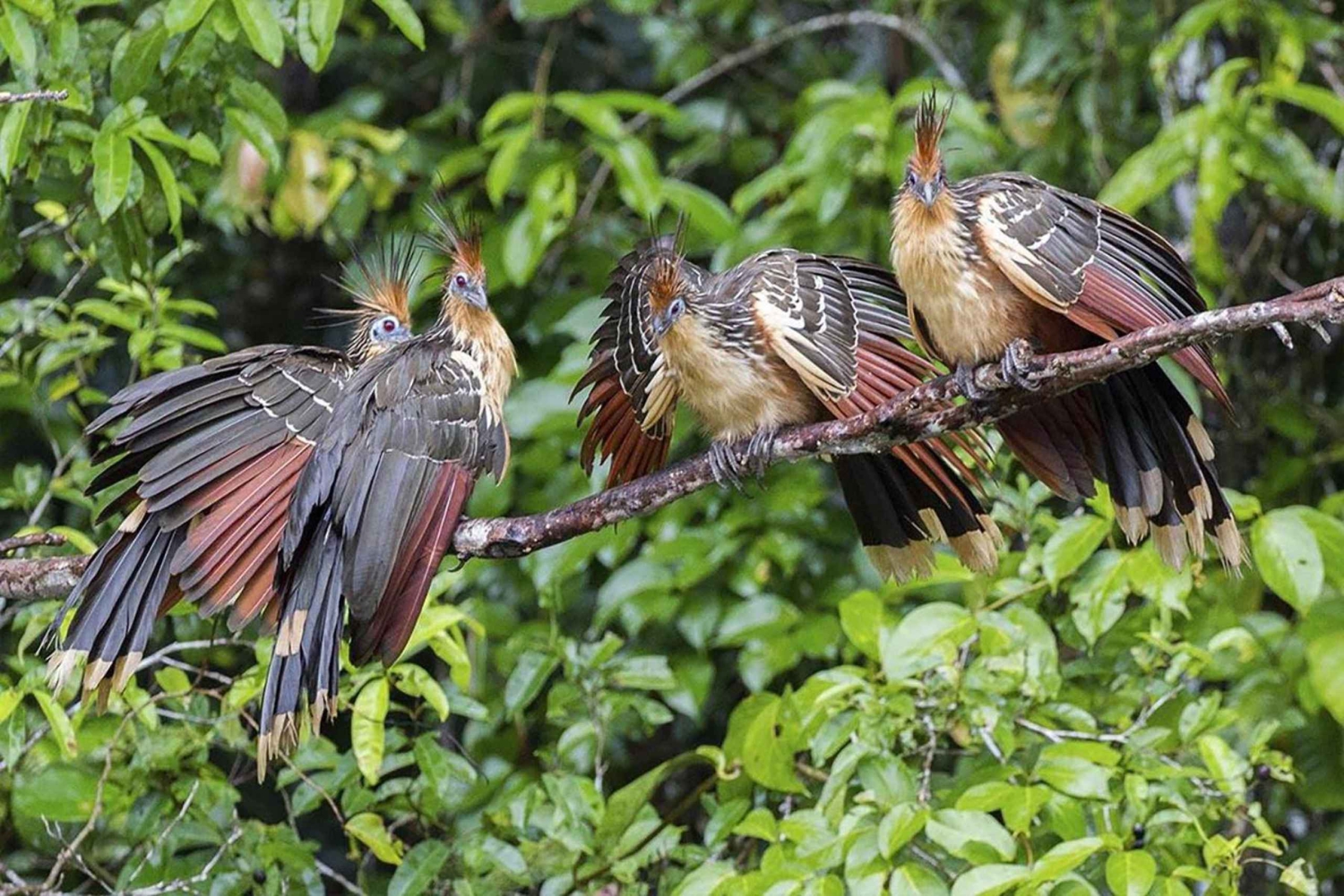 Start eventyret rundt kl. 05.00 ved papegøye- og ara-leireplassen, som ligger på en pittoresk klippe ved Tambopata-elven. Se små papegøyer og araer samles for å spise salt og leire, som er en viktig del av kostholdet deres. Nyt en fascinerende oppvisning av livlige farger og naturlig atferd.