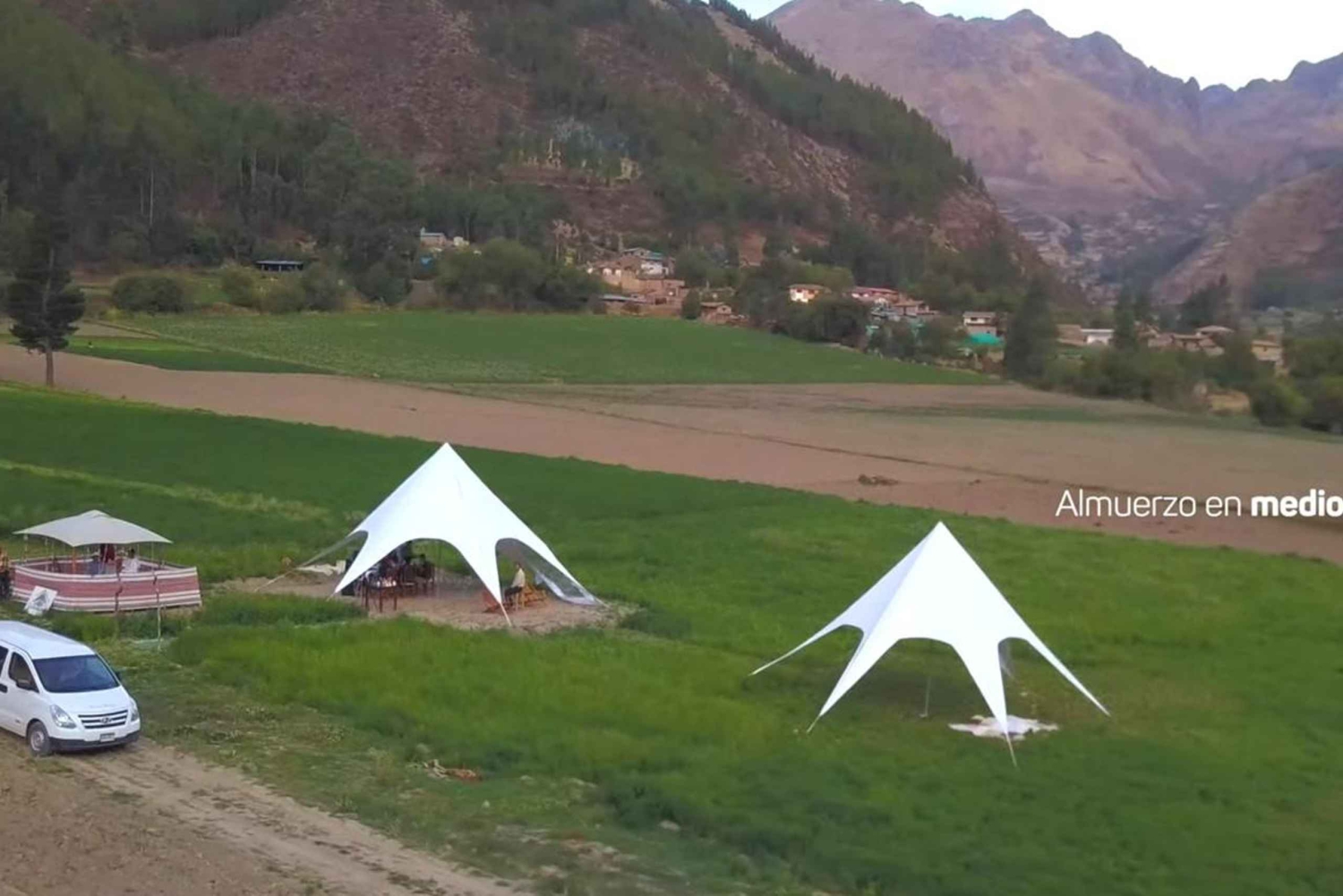 Lanches: Mantenha-se energizado durante sua aventura com um pacote de lanches cuidadosamente preparado. Ele inclui uma garrafa de água, chocolate, bolo, uma barra de cereal andina, frutas frescas e doces deliciosos.