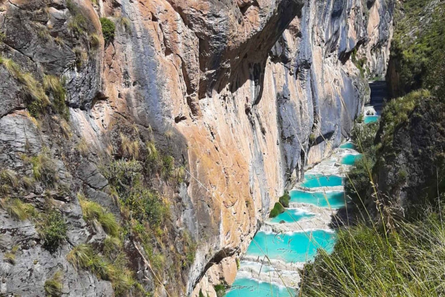 De imediato começamos o percurso pela margem do rio até chegarmos às primeiras piscinas naturais. A partir deste ponto teremos de subir uma encosta até ao miradouro de onde se avista o imenso desfiladeiro de águas azul-turquesa. Os que desejarem podem descer novamente por um caminho habilitado para este trecho, até chegar à margem das piscinas onde podem tirar fotos e fazer vídeos sem entrar na água.