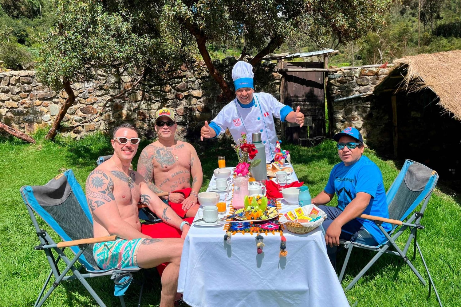 Acorde com chá de coca ou café na sua tenda, seguido de um café da manhã. Comece uma subida constante por vales com lagos e vida selvagem andina. Chegue à Passagem do Condor, a 4750 m, para vistas deslumbrantes de picos nevados e lagoas turquesa. Participe numa cerimónia tradicional de oferendas antes de descer. Desfrute de um almoço quente em Acopata, depois caminhe por vales cénicos com lamas e alpacas. Chegue à aldeia de Canchacancha (3750 m), conheça famílias locais e aprenda algumas frases em quíchua. Termine o dia com um jantar e vistas para a montanha.