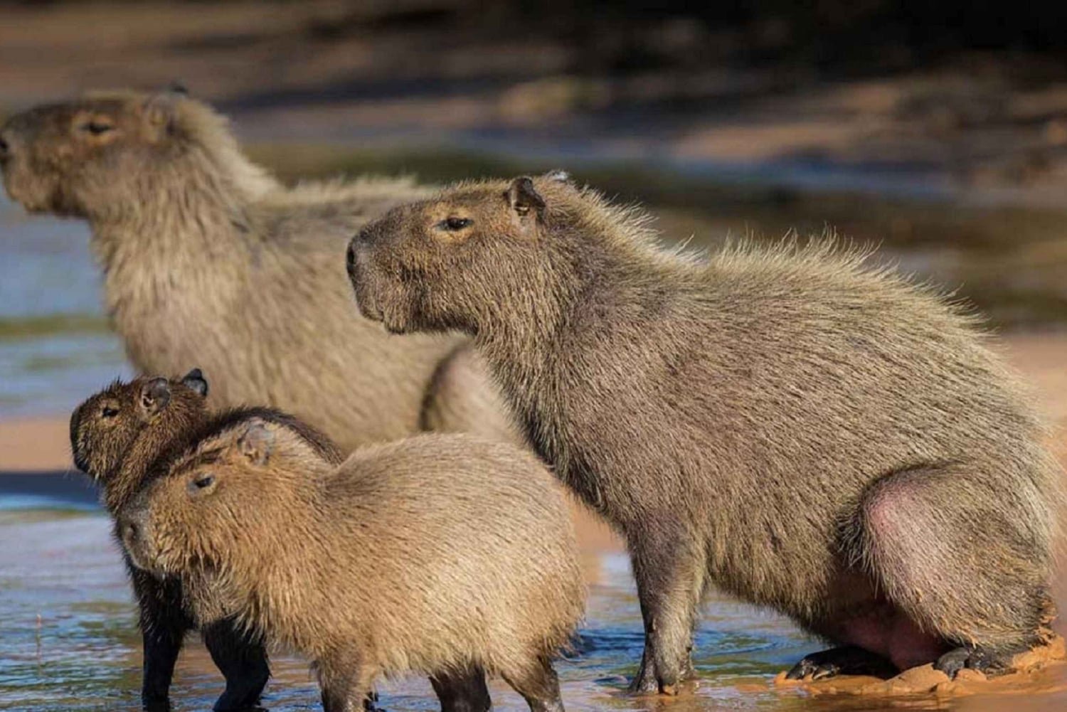 - Passeio de barco ao pôr do sol com lanterna à procura de capivaras, jacarés e preguiças