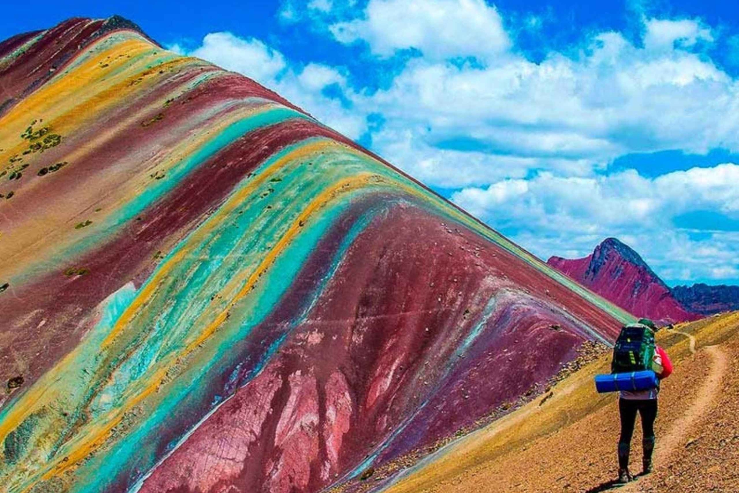 Маршрут: Сбор в 4:30 утра. Затем мы направляемся на юг по Панамериканскому шоссе в течение полутора часов, пока не достигнем района Кусипата, где мы завтракаем, а затем продолжаем наш тур еще в течение полутора часов, проезжая через Чекакупе, Питумарку, Ханчипачу, а затем мы прибываем в Кайрауири около 9:00 утра, где мы оставляем машину и продолжаем наш маршрут на квадроциклах, прежде чем мы делаем тренировку в течение примерно 20 минут. Позже мы продолжаем наш маршрут на квадроциклах к той же радужной горе в течение примерно 30 минут, двигаясь медленно (превышение скорости запрещено) подъем, и около 10:00 утра мы прибываем к нашему месту назначения, радужной горе, где у нас будет время 40 минут, чтобы провести разведку места. Затем мы снова спускаемся на квадроциклах еще 30 минут к автомобильной парковке, а затем садимся и высаживаемся из машины. Затем мы продолжаем наш возврат в течение полутора часов в район Кусипата в наш ресторан примерно в 14:00, где мы пообедаем по системе «шведский стол», а затем вернемся в Куско еще на полтора часа. Наша последняя остановка — площадь Регосихо в историческом центре Куско, где мы попрощаемся.
