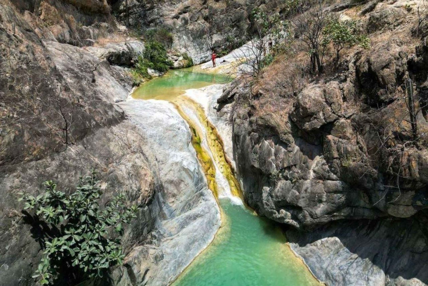 Jagueyes of Mayascon är naturliga pooler med transparent turkos och grönt vatten som vilar på klippformationer