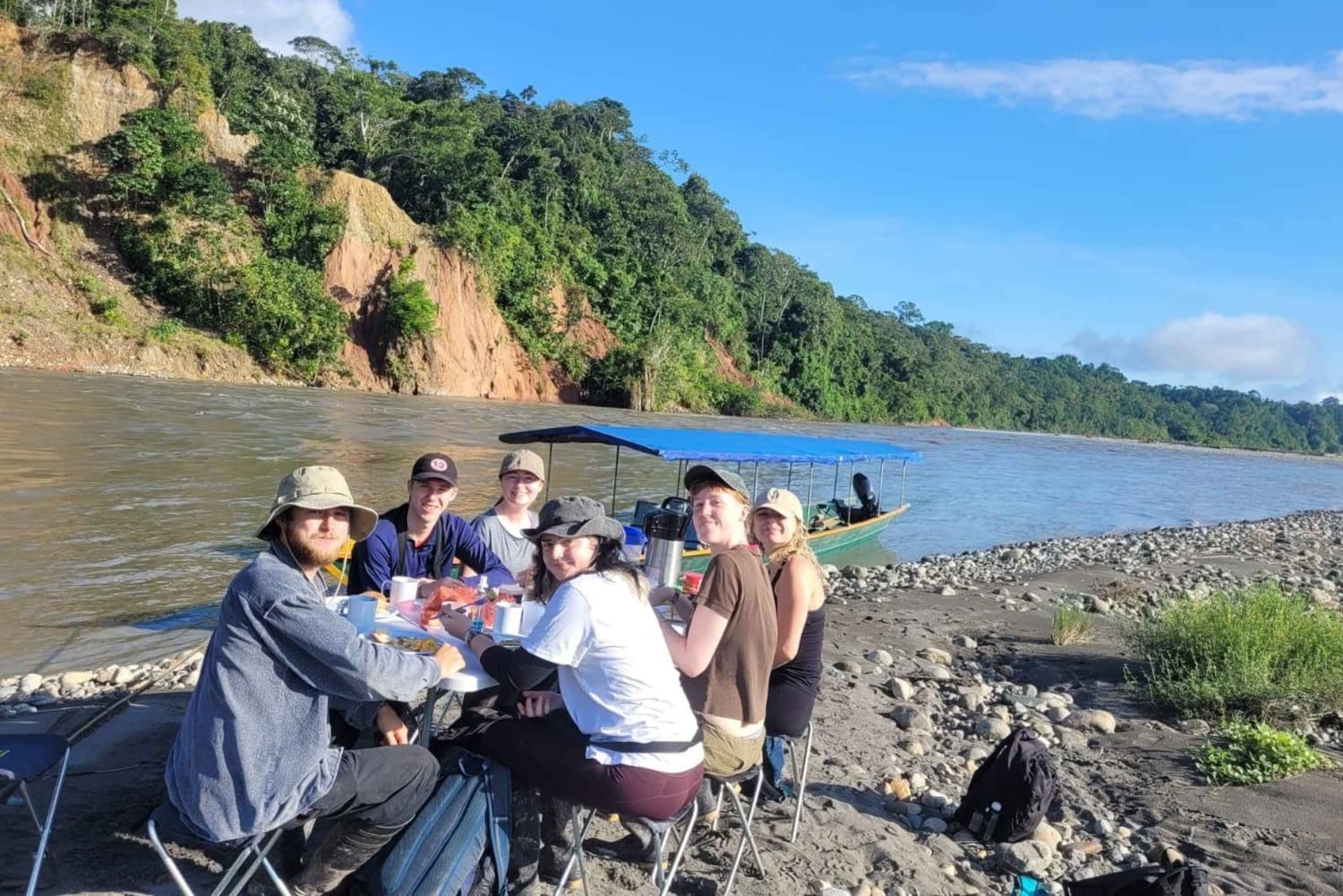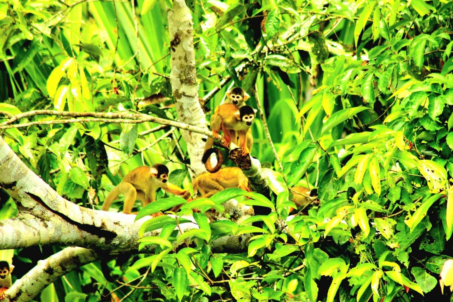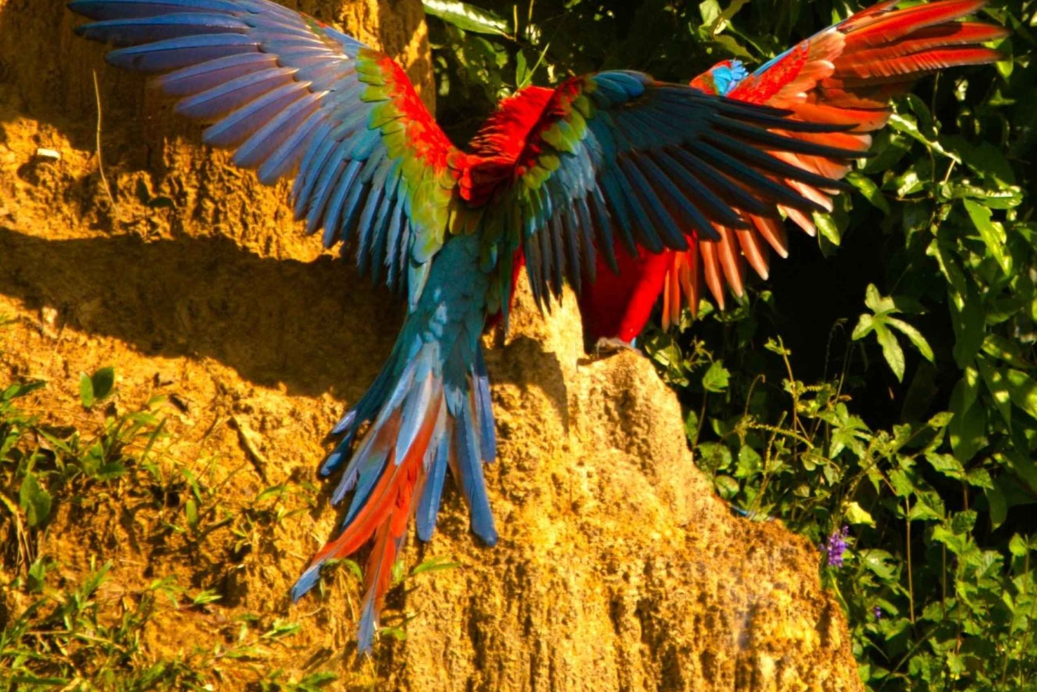Kom till Manu-djungeln för att se vilda djur som: apor, kajmaner, araer, färgglada fåglar. och njut av det varma klimatet i regnskogen och njut av båtresan längs Madre de Dios-floden