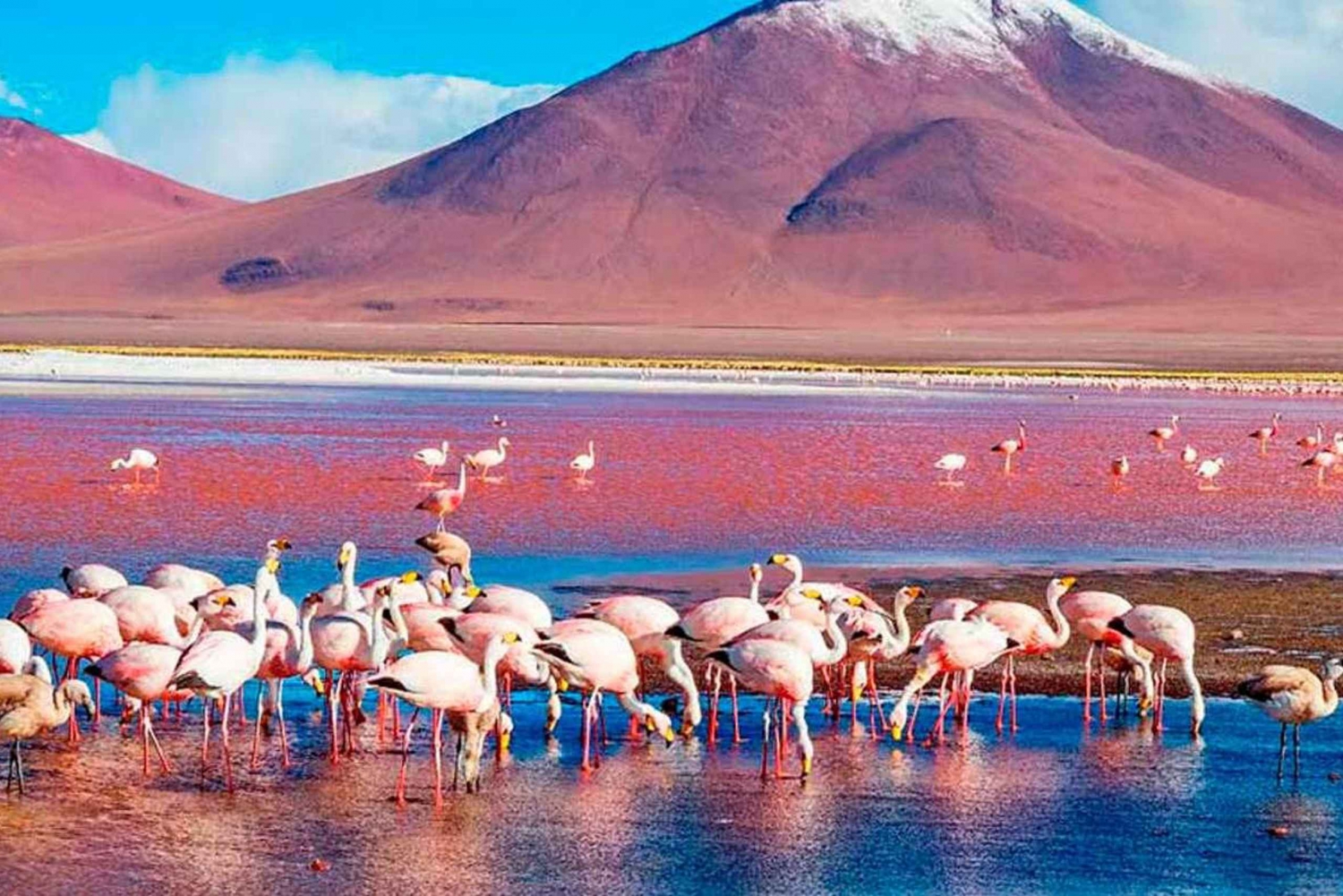 Vi börjar med frukost på saltlodgen. Vi kommer att besöka: Chiarkota-lagunen, Hedionda-lagunen, Colorada-lagunen, Huayllajara stad där vi äter middag och övernattar i en familjelodge i samhället.