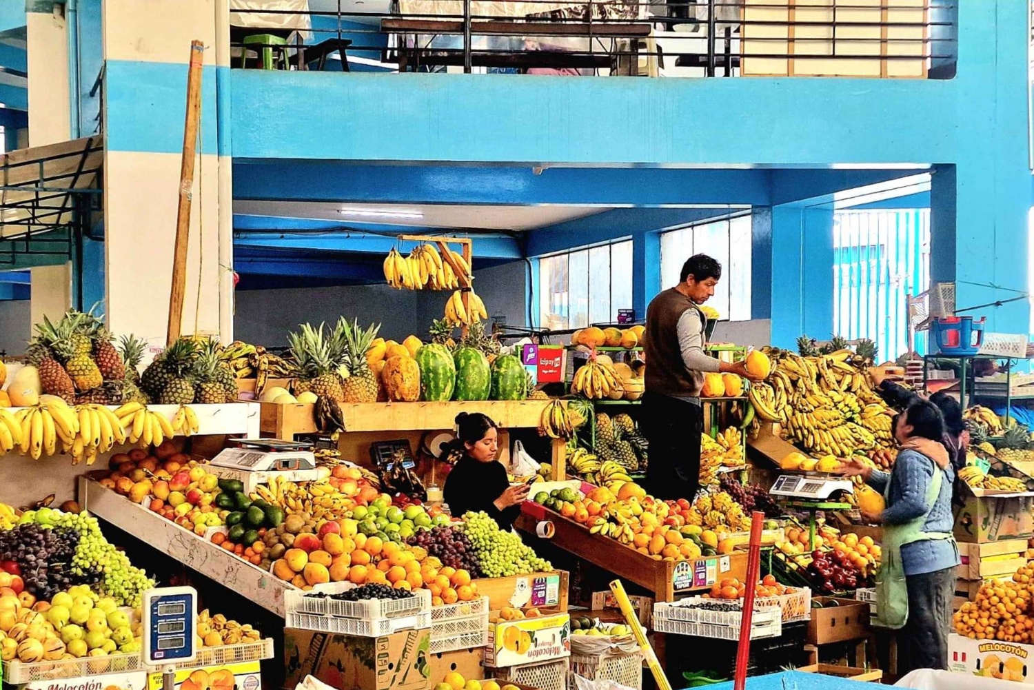 Huvudupplevelse: Provsmakning av lokala produkter (fruktjuice, rocoto relleno, papa rellena, tamales etc.) samtidigt som du lär dig om det dagliga livet för familjerna som levererar till marknaden.